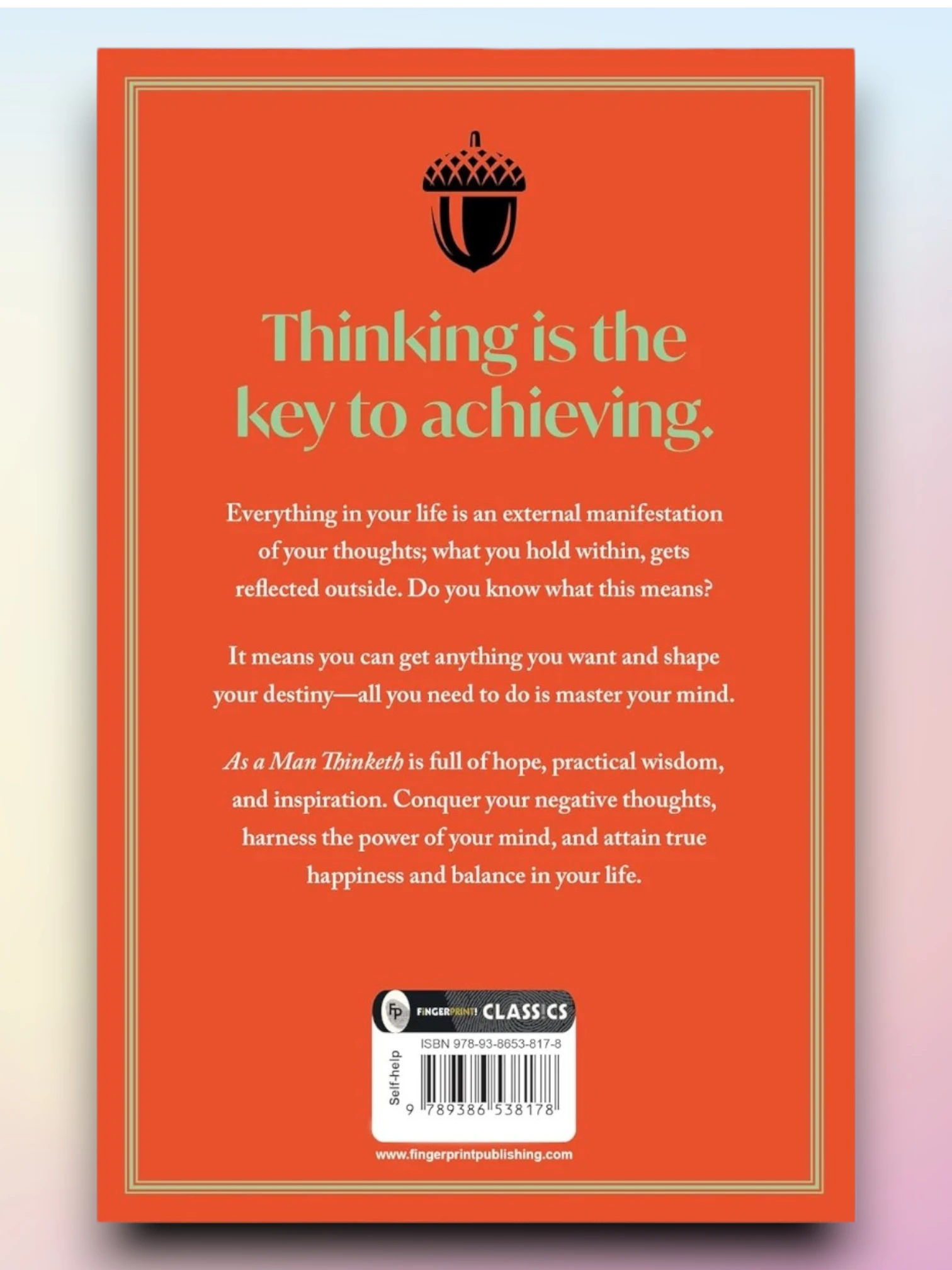 Discover the timeless wisdom of James Allen's "As a Man Thinketh." This powerful book explores the connection between thoughts and personal achievement, inspiring readers to harness the power of their minds for positive transformation and success. James Allen's classic self-help book, "As a Man Thinketh" Uncover the profound influence of thoughts on personal achievement Learn how to shape your thoughts for success and personal growth Perfect for those seeking self-improvement and a positive mindset A timeless guide to harnessing the power of your thoughts for a fulfilling life.