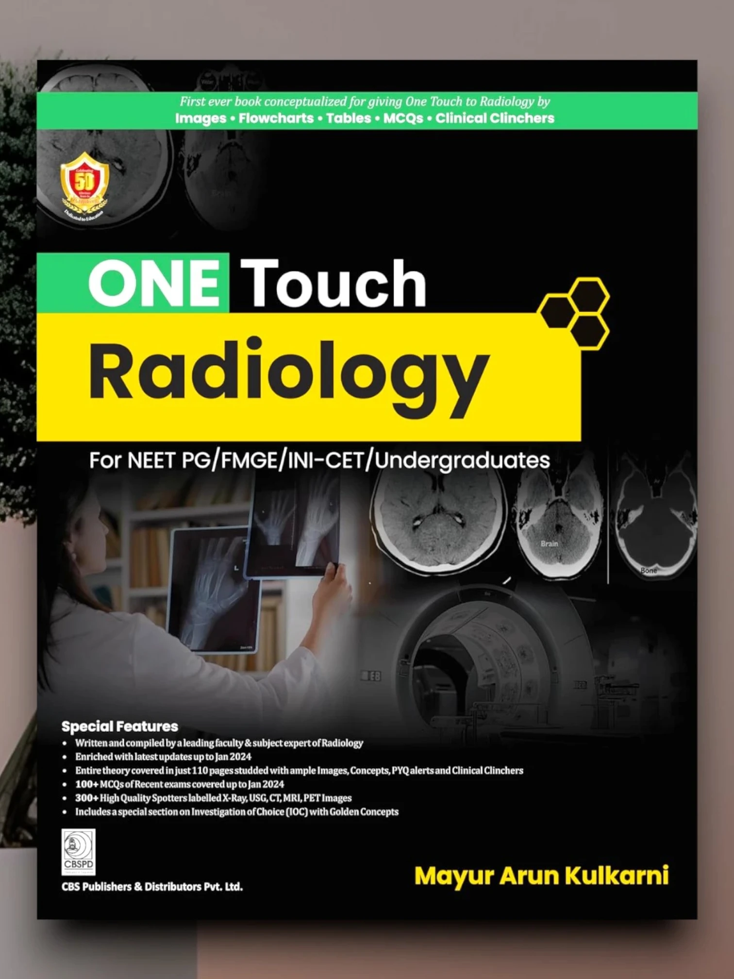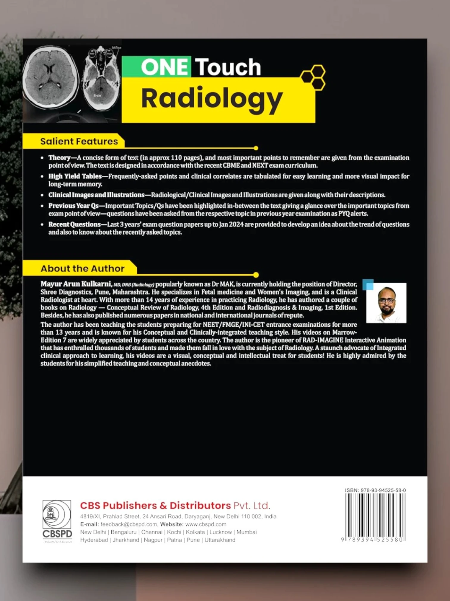 Special Features ★ Written and compiled by a leading faculty & subject expert of Radiology ★ Enriched with latest updates up to Jan 2024 ★ Entire theory covered in just 110 pages studded with ample Images, ★ Concepts, PYQ alerts and Clinical Clinchers ★ 100+ MCQs of Recent exams covered up to Jan 2024 ★ 300+ High Quality Spotters labelled X-Ray, USG, CT, MRI, PET Images ★ Includes a special section on Investigation of Choice (IOC) with Golden Concepts Salient Features Theory—A concise form of text (in approx 110 pages), and most important points to remember are given from the examination point of view. The text is designed in accordance with the recent CBME and NEXT exam curriculum. High Yield Tables—Frequently-asked points and clinical correlates are tabulated for easy learning and more visual impact for long-term memory. Clinical Images and Illustrations—Radiological/Clinical Images and Illustrations are given along with their descriptions. Previous Year Qs—Important Topics/Qs have been highlighted in-between the text giving a glance over the important topics from exam point of view—questions have been asked from the respective topic in previous year examination as PYQ alerts. Recent Questions—Last 3 years' exam question papers up to Jan 2024 are provided to develop an idea about the trend of questions and also to know about the recently asked topics. About the Author Mayur Arun Kulkarni, MD, DNB (Radiology) popularly known as Dr MAK, is currently holding the position of Director, Shree Diagnostics, Pune, Maharashtra. He specializes in Fetal medicine and Women's Imaging, and is a Clinical Radiologist at heart. With more than 14 years of experience in practicing Radi