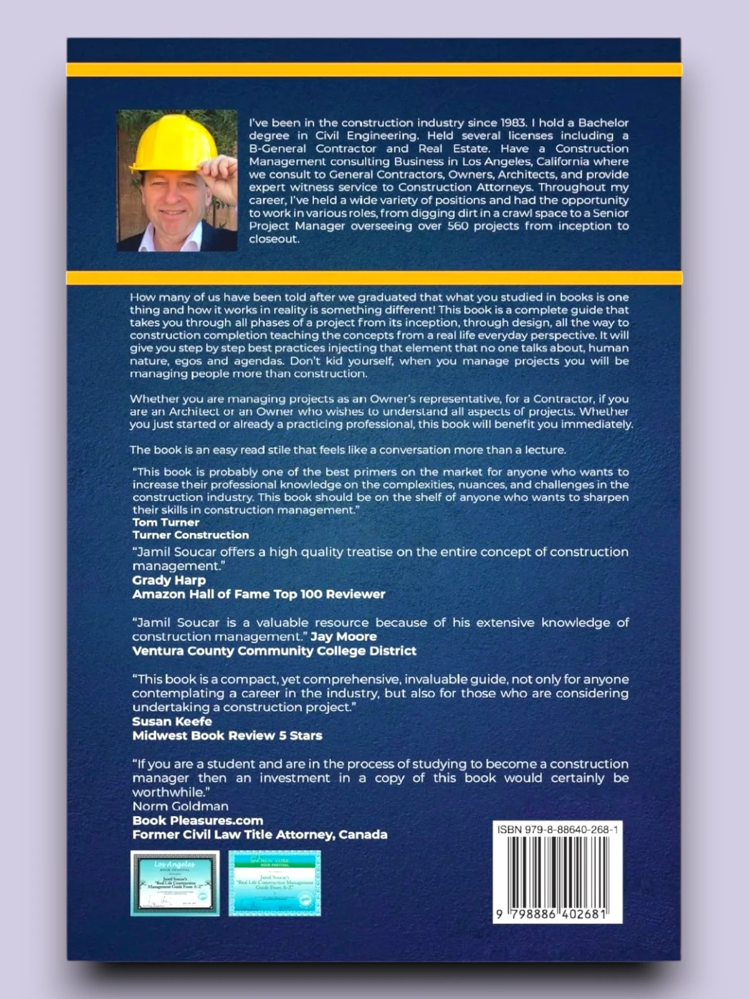 How many of us have been told after we graduated that what you studied in books is one thing and how it works in reality is something different! This book is a complete guide that takes you through all phases of a project from its inception, through design, all the way to construction completion teaching the concepts from a real life everyday perspective. It will give you step by step best practices injecting that element that no one talks about, human nature, egos and agendas. Don't kid yourself, when you manage projects you will be managing people more than construction. Whether you are managing projects as an Owner's representative, for a Contractor, if you are an Architect or an Owner who wishes to understand all aspects of projects. Whether you just started or already a practicing professional, this book will benefit you immediately. The book is an easy read stile that feels like a conversation more than a lecture.
